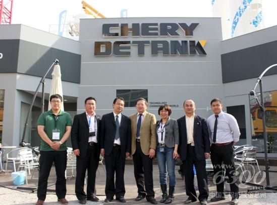 中國駐德國慕尼黑總領(lǐng)事館經(jīng)濟(jì)商務(wù)領(lǐng)事(參贊)陶百良先生一行到訪CHERY DETANK展位,周鴻娣領(lǐng)事及中國機(jī)電商會(huì)領(lǐng)導(dǎo)隨行陪同。