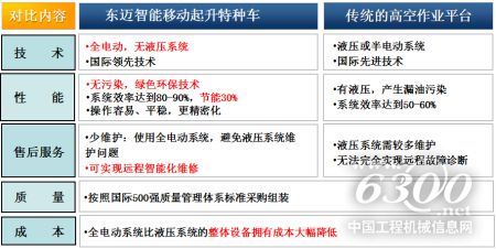 周總:東邁重工核心產(chǎn)品為智能移動(dòng)起升特種車系列產(chǎn)品。采用國(guó)際首創(chuàng)的智能化微電腦總線控制,應(yīng)用驅(qū)動(dòng)、能源、轉(zhuǎn)向和升降系統(tǒng)的純電動(dòng)機(jī)構(gòu)。同目前國(guó)際主流產(chǎn)品相比,實(shí)現(xiàn)了技術(shù)水平的超越。