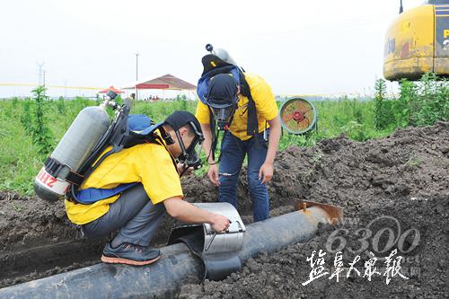 據(jù)了解,19日下午,兩名設備維護人員正在抱箍封堵管道泄漏點。當天,西氣東輸“寶豐線”應急演練在市世界之窗現(xiàn)代農(nóng)業(yè)示范園區(qū)舉行。演練模擬大通公司高壓長輸燃氣管線被第三方施工破壞,啟動應急聯(lián)動機制進行預案的演練和實戰(zhàn),防患于未然,強化預控型安全管控措施,保障上下游企業(yè)的供氣安全。