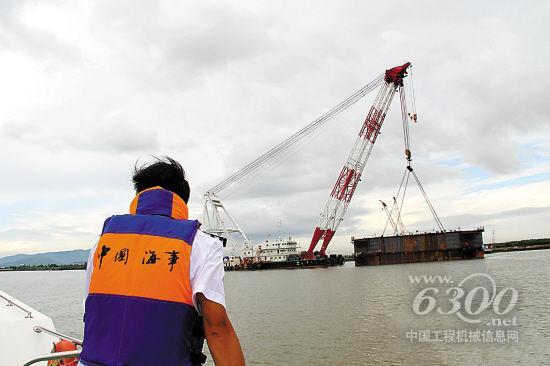海事執(zhí)法人員關(guān)注水面施工情況