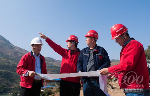 中鐵十八局大瑞鐵路指揮長閆樹新(右二)、怒江特大橋項目經(jīng)理于長彬(左二)等在施工現(xiàn)場研究施工方案。王會堂攝