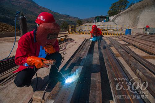 大瑞鐵路怒江特大橋全面開工,圖為焊工在精心焊接作業(yè)。王會堂攝