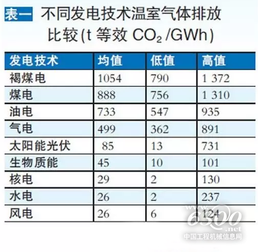 表一 不同發(fā)電技術(shù)溫室氣體排放比較