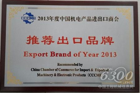 山推股份榮獲“2013年機電商會推薦出口品牌”