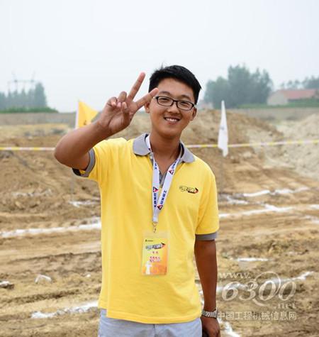 挖掘機(jī)手薛勇晉級后開心地沖鏡頭擺起了pose
