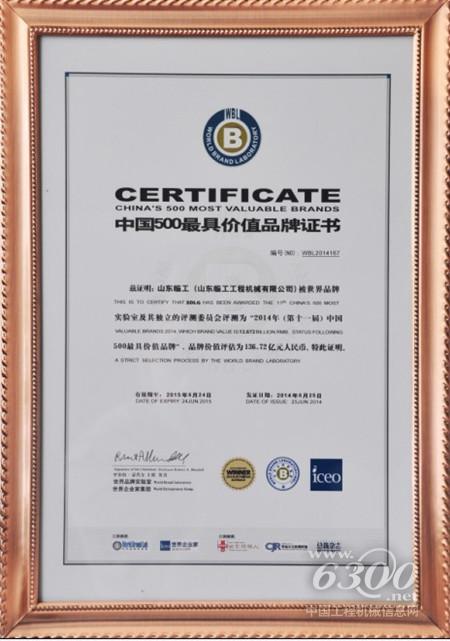 山東臨工榮登中國最具價值品牌500強(qiáng)榜單