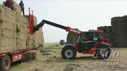 近日,一臺(tái)MLT-X735在內(nèi)蒙古錫林郭勒草原完成交車,用于牧草草捆的堆垛和裝車。之前需要一臺(tái)裝載機(jī),2根鋼絲繩及4個(gè)人力才能完成的工作,現(xiàn)在使用曼尼通伸縮臂叉裝車只需配備高擋貨叉,一次便可搬運(yùn)4個(gè)草捆(每個(gè)草捆約重400公斤),大大提高了效率,得到了客戶的高度贊譽(yù)。