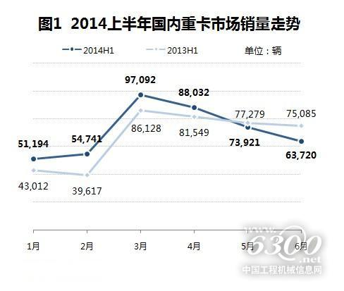 根據(jù)數(shù)據(jù)顯示,今年上半年,國內(nèi)重卡市場(含非完整車型、半掛牽引車)整體實現(xiàn)增長,銷量累計42.90萬輛,較去年同期增長了6.5%。從月度銷量來看,重卡市場上半年呈現(xiàn)先升后降走勢:一季度市場持續(xù)大幅增長,而二季度市場略顯疲憊,銷量已出現(xiàn)走跌。