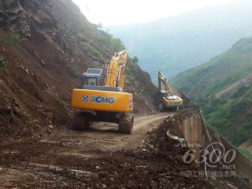 徐工挖掘機(jī)進(jìn)入災(zāi)區(qū)在龍頭山鎮(zhèn)塌方地段緊急搶修道路