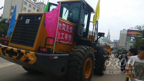 通往災(zāi)區(qū)的路上泥濘不堪,一臺臺整齊的工程機(jī)械設(shè)備在雨中嚴(yán)陣以待,“地震無情,徐工有情”的紅色條幅顯得更加鮮艷。卞泳介紹說,在通往災(zāi)區(qū)的路上禁止大型車輛和民用車輛進(jìn)入,只允許救災(zāi)車輛通行,維持交通秩序的警察看到徐工的救援車隊(duì)時(shí),對徐工勇?lián)笕蔚男袨楸硎举澷p和欽佩,并第一時(shí)間緊急疏導(dǎo)交通讓徐工裝備快速通過。