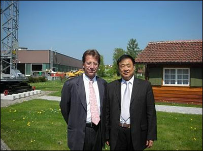 Liebherr中國(guó)公司總經(jīng)理葛書(shū)凡博士與陳正利秘書(shū)長(zhǎng)在Kirchdorf的Liebherr輪式挖掘機(jī)廠合影