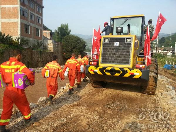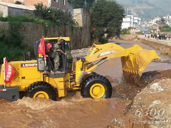徐工裝載機(jī)在魯?shù)閰⑴c救援,疏通河道,防止暴雨引發(fā)洪水泥石流