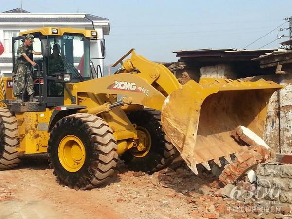 徐工裝載機(jī)一路清理路面倒塌房屋碎石