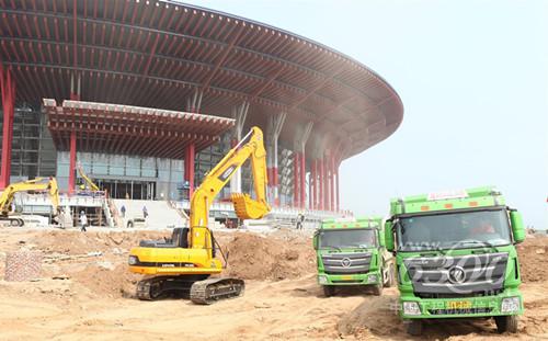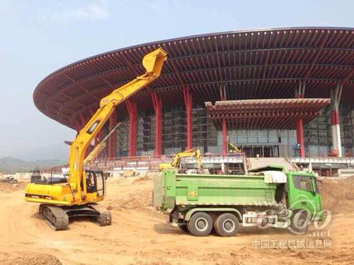 記者在施工現(xiàn)場看到,作為本次北京APCE場館建設(shè)的主要設(shè)備,雷沃挖掘機(jī)正在緊張有序的忙碌著。