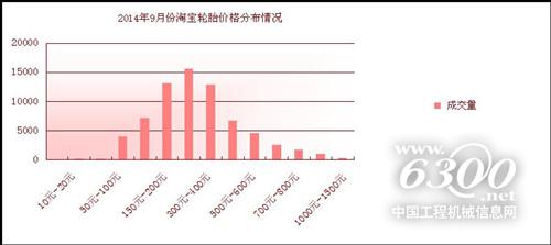 2014年9月,線上輪胎的銷售價格基本維持不變,從150元到1500元不等,而200-500元的輪胎價格區(qū)間依舊最受消費(fèi)者歡迎,相較于上月變化不大。本月輪胎200-300、300-400、400-500元的成交量均大破10000件大關(guān),其中,300-400元的輪胎銷量更是突破15000件。由此看出,平民化的價格仍然最受消費(fèi)者的歡迎?! ?