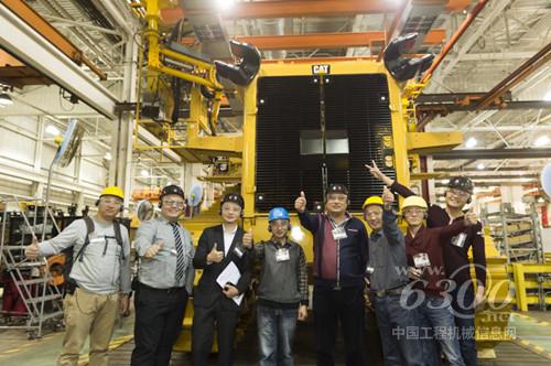 在卡特彼勒東皮奧里亞工廠與Cat大型推土機(jī)合影留念