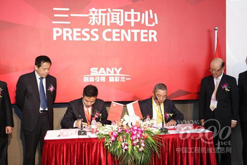 本次簽約在2014年上海寶馬展三一展廳新聞中心舉行,三一集團董事、三一重工總裁向文波先生,三一集團董事、三一路機公司董事長王佐春先生,正大集團副董事長李紹祝先生,正大集團印度尼西亞副董事長何凱慶先生等領(lǐng)導出席了雙方的簽約儀式。