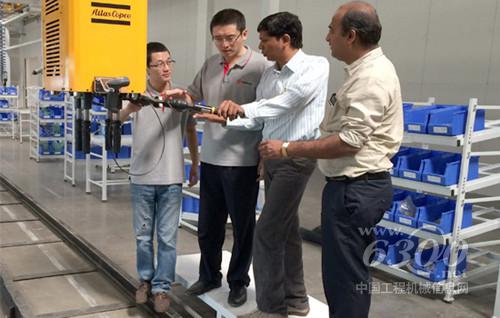 杜全文(左一)現(xiàn)場給印度員工翻譯擰緊機(jī)使用規(guī)范