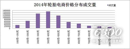2014年整年,線上輪胎的銷(xiāo)售價(jià)格基本維持不變,從150元到1500元不等,而200-500元的輪胎價(jià)格區(qū)間始終最受消費(fèi)者歡迎,全年變化不大。300-400元的輪胎成交量大破140000件大關(guān),由此看出,平民化的價(jià)格仍然最受消費(fèi)者的歡迎。