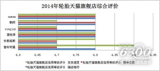 據(jù)中國(guó)輪胎商務(wù)網(wǎng)(www.tirechina.net)電商研究中心統(tǒng)計(jì),目前進(jìn)駐天貓旗艦店的輪胎品牌已達(dá)10家。從現(xiàn)有數(shù)據(jù)來(lái)看,無(wú)論是產(chǎn)品描述相符程度,還是商家發(fā)貨速度和服務(wù)態(tài)度,各家輪胎品牌旗艦店的分?jǐn)?shù)均維持在中等水平。此外,從消費(fèi)者的打分和評(píng)價(jià)方面可以看出,目前商家的發(fā)貨速度和服務(wù)態(tài)度的滿(mǎn)意度普遍較低,商家仍需在這兩方面多下功夫。