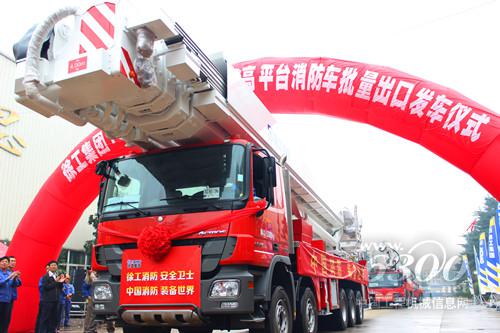 2014年,徐工產(chǎn)品出口持續(xù)保持行業(yè)領(lǐng)先,不僅在南美、東歐、澳洲、中東、中亞占有率保持全球前三位,在美國、加拿大、日本等發(fā)達國家也實現(xiàn)批量主機突破性進入。百臺徐工挖掘機批量出口美國,“世界第一高”百米登高平臺消防車批量出口安哥拉,全地面起重機銷往中東和南美,千噸級履帶起重機行業(yè)首臺出口海外,百臺礦用重卡出口東南亞。