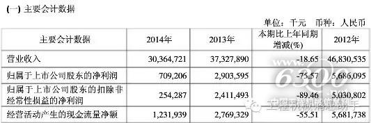 但是越是難找的資料,工程機械消息助手越是得心應(yīng)手,我們再同花順問財里找到了這份年報,可以看到,2014年三一主要數(shù)據(jù)如上表格所示,營業(yè)收入雖然只下降了18%,但是凈利潤卻下降了75%,這個下降比例和徐工中聯(lián)都差不多,但是足以讓三一自豪的是,2014三一的凈利潤幾乎是那兩家的總和!
