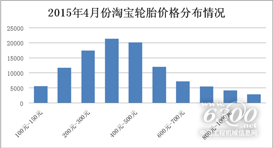 2015年4月份,線上輪胎的銷售價格基本維持不變,從150元到1500元不等,而200-500元的輪胎價格區(qū)間依舊最受消費者歡迎,相較于上月變化不大。本月輪胎300-400元的成交量突破20000件大關(guān)。由此看出,平民化的價格仍然最受消費者的歡迎。