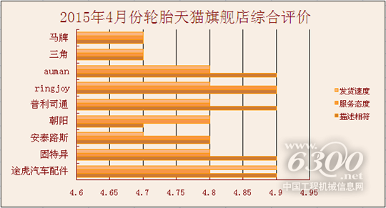 據(jù)中國輪胎商務(wù)網(wǎng)(www.tirechina.net)電商研究中心統(tǒng)計,目前進駐天貓旗艦店的輪胎品牌增至12家。從現(xiàn)有數(shù)據(jù)來看,無論是產(chǎn)品描述相符程度,還是商家發(fā)貨速度和服務(wù)態(tài)度,各家輪胎品牌旗艦店的分?jǐn)?shù)均維持在中等水平。此外,從消費者的打分和評價方面可以看出,目前商家的描述相符和服務(wù)態(tài)度的滿意度普遍較低,商家仍需在這兩方面多下功夫。