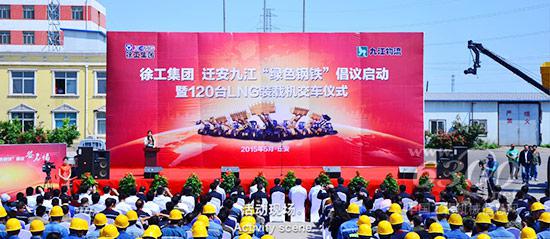 2015年5月20日,近期LNG裝載機全球熱點事件——盛傳已久的“全球第一單”,120臺徐工第三代LNG裝載機交車儀式在遷安九江物流基地震撼舉行。“徐工集團——遷安九江‘綠色鋼鐵’倡議活動”同時啟動。來自河北唐山、秦皇島地區(qū)的各大鋼鐵企業(yè)用戶,以及港口、水泥煤炭等行業(yè)的領(lǐng)導(dǎo)型客戶200余人共襄盛舉。徐工機械副總裁、徐工鏟運機械事業(yè)部總經(jīng)理楊東升和遷安九江物流常務(wù)副總經(jīng)理王良,代表雙方企業(yè)交接車輛,并聯(lián)合發(fā)出“綠色鋼鐵”倡議。