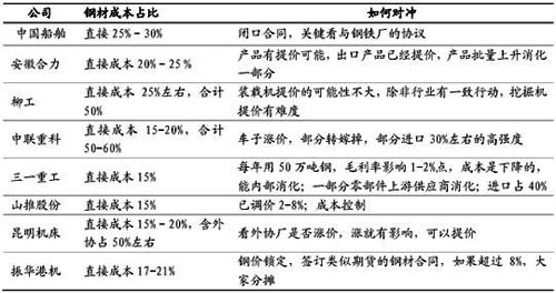 機(jī)械行業(yè)主要上市公司受鋼鐵漲價(jià)影響圖示一