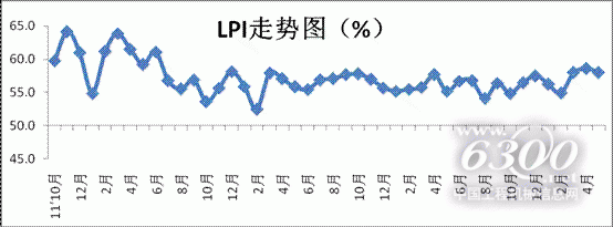 中國物流與采購聯(lián)合會發(fā)布的2015年5月份中國物流業(yè)景氣指數(shù)(LPI)為58%,比上月回落0.6個百分點。各分項指數(shù)中,除固定資產(chǎn)投資完成額指數(shù)回升外,其他分項指數(shù)均有不同程度的回落。