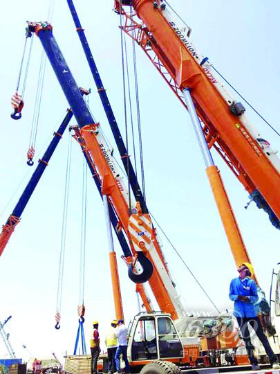 交付現(xiàn)場,中聯(lián)重科起重機(jī)巨臂擎天
