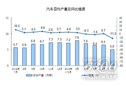 分產(chǎn)品看,7月份,565種產(chǎn)品中有268種產(chǎn)品同比增長。其中,鋼材9230萬噸,同比下降1.9%;水泥21193萬噸,下降4.7%;十種有色金屬436萬噸,增長9.3%;乙烯146萬噸,下降2.3%;汽車156.2萬輛,下降11.2%;轎車70.8萬輛,下降26.3%;發(fā)電量5090億千瓦時(shí),下降2.0%;原油加工量4354萬噸,增長4.3%。