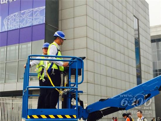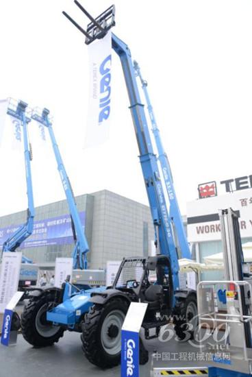 與會者在展臺試乘吉尼高空作業(yè)平臺