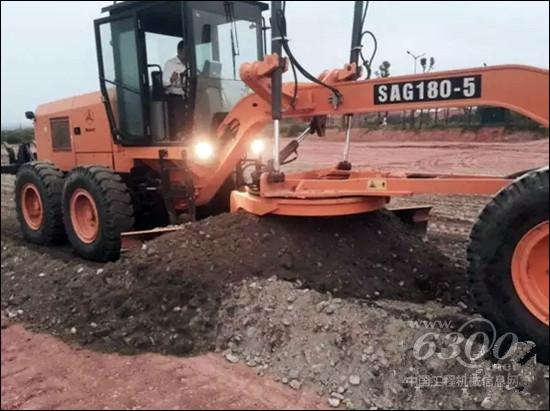 圖為吳慶偉試駕三一路機SAG180-5平地機現(xiàn)場