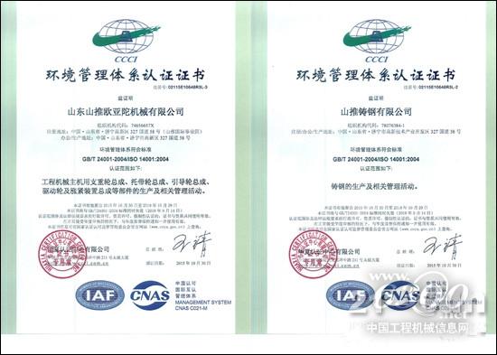 近日,山推工程機(jī)械股份有限公司及山東山推工程機(jī)械結(jié)構(gòu)件公司、山東山推歐亞陀機(jī)械有限公司、山推鑄鋼有限公司順利通過了環(huán)境管理體系再認(rèn)證審核,并收到了來自華夏認(rèn)證中心頒發(fā)的環(huán)境管理體系認(rèn)證證書和批準(zhǔn)認(rèn)證注冊通知。