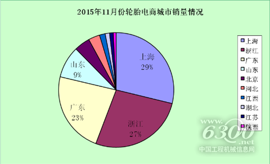 2015年11月份輪胎電商地域格局繼續(xù)趨向多樣化,曾經(jīng)的電商地域“霸主”上海,本月份輪胎電商銷(xiāo)量有所下降,僅占29%,浙江省本月銷(xiāo)量攀至27%,屈居第二位。廣東輪胎線(xiàn)上銷(xiāo)量亦不甘示弱,奮力直追,占據(jù)23%。其他省市如山東等地電商也發(fā)展迅猛,試圖在輪胎電商市場(chǎng)“分多一杯羹”,由此可見(jiàn)輪胎電商的的區(qū)域競(jìng)爭(zhēng)更加激烈,冠軍寶座隨時(shí)可能易主。