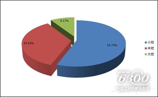 2015年,13噸及以下的小型挖掘機銷售32000多臺,占總銷量55%以上,13噸到30噸的中型挖掘機(不包括30噸)銷售20000多臺,占比35%;30噸以上的大型挖掘機銷量銷售5403臺,占比不足10%大挖則略有下降。相較于2014年,小挖同期下降近26%;中挖同期下降44%;大挖同期下降43%。