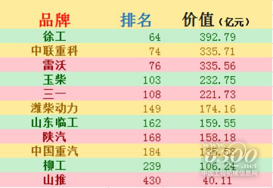 二、徐工品牌價值392.79億元行業(yè)居首。英國KHL發(fā)布最新全球工程機械排行榜徐工列中國第一