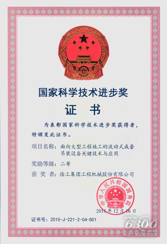 12月16日,國務院頒發(fā)自然科學獎、國家技術發(fā)明獎、國家科學技術進步獎和國際科學技術合作獎。徐工集團“面向大型工程施工的流動式成套吊裝設備關鍵技術與應用”項目獲得2015年度國家科學技術進步二等獎,是工程機械行業(yè)年度唯一獲獎項目。