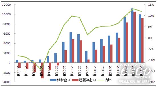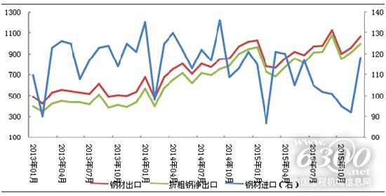 2015年我國鋼材出口整體呈上揚走勢,其中僅2、3、 10月出口量有所下降。自2009年金融危機以來鋼材出口量以及出口量所占產量比重均成上升趨勢,可謂是前無古人。而由于目前我國鋼材的出口有品種集中、出口地集中的特點,市場競爭較大,當地針對性的反傾銷政策很容易爆發(fā),故預測2016年的鋼材出口量為1億噸左右,略有下降。所以鋼材出口2015年可以預計后無來者。