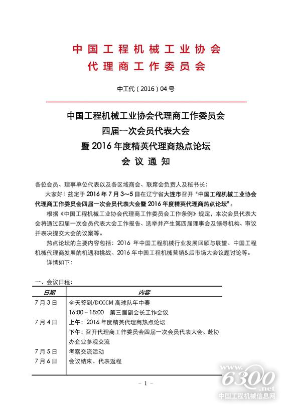中國(guó)工程機(jī)械工業(yè)協(xié)會(huì)代理商工作委員會(huì)四屆一次會(huì)員代表大會(huì)暨2016年度精英代理商熱點(diǎn)論壇會(huì)議的通知