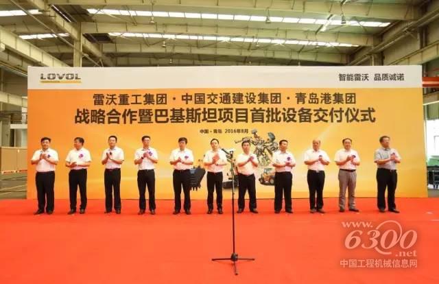 2016年8月12日,雷沃重工集團(tuán)與中國交通建設(shè)集團(tuán)、青島港集團(tuán)戰(zhàn)略合作暨巴基斯坦項(xiàng)目首批設(shè)備交付儀式在雷沃重工隆重舉行。本次交付的批量FL958G-ETX雷沃裝載機(jī)將奔赴巴基斯坦“一帶一路”旗艦項(xiàng)目——中巴經(jīng)濟(jì)走廊。雷沃重工集團(tuán)董事長、總經(jīng)理王桂民,中國交通建設(shè)集團(tuán)華東區(qū)總經(jīng)理王永強(qiáng),青島港集團(tuán)副總裁張江南,中國路橋集團(tuán)物資裝備部總經(jīng)理吳金海,青島市黃島區(qū)副區(qū)長孫大貴等領(lǐng)導(dǎo)出席儀式。