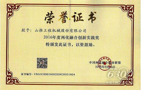 山推榮獲“2016年度兩化融合創(chuàng)新實(shí)踐獎(jiǎng)”?