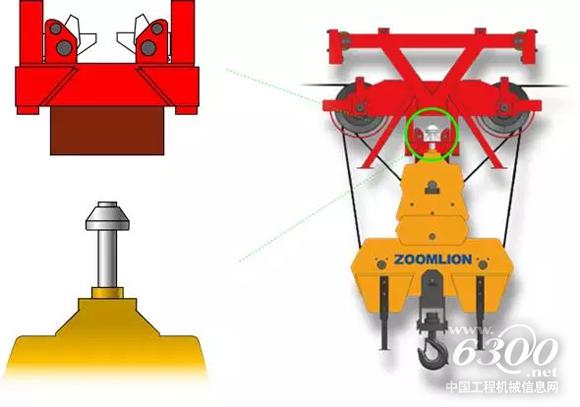 當(dāng)?shù)蹉^向上運(yùn)動(dòng)時(shí),如果安全裝置失效或司機(jī)誤操作,該裝置能在吊鉤沖頂后,把吊鉤牢牢的固定在載重小車上,即使鋼絲繩斷裂,吊鉤也不會(huì)從高空墜落。