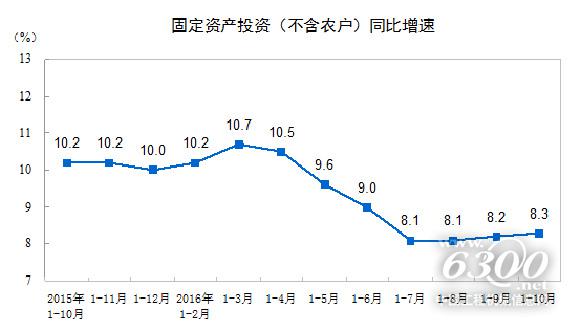 國(guó)家統(tǒng)計(jì)局網(wǎng)站消息,2016年1-10月份,全國(guó)固定資產(chǎn)投資(不含農(nóng)戶)484429億元,同比名義增長(zhǎng)8.3%,增速比1-9月份加快0.1個(gè)百分點(diǎn)。從環(huán)比速度看,10月份固定資產(chǎn)投資(不含農(nóng)戶)增長(zhǎng)0.58%。