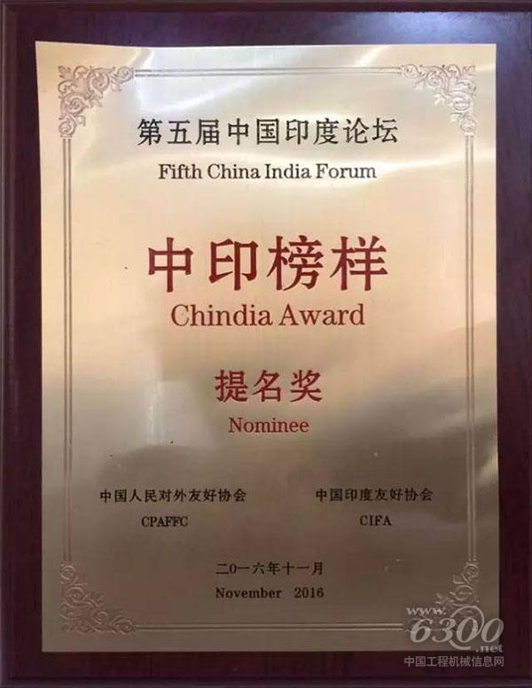 山東重工印度公司憑借其規(guī)范的公司管理、突出的業(yè)績表現(xiàn)、優(yōu)良的雇主形象、知名的品牌美譽度獲得“中印榜樣”提名獎。