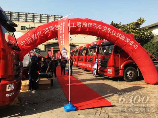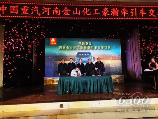 11月26日,中國(guó)重汽與河南金山化工50臺(tái)豪瀚牽引車(chē)交車(chē)儀式在焦作孟州市隆重舉行。中國(guó)重汽銷(xiāo)售部常務(wù)書(shū)記高增東,河南金山化工有限責(zé)任公司副總經(jīng)理劉勇軍,河南金路物流有限公司總經(jīng)理?xiàng)顫?,山東時(shí)代天成投資有限公司董事、河南時(shí)代天成汽車(chē)銷(xiāo)售有限公司董事長(zhǎng)李靜、總經(jīng)理蘭守嶺等出席儀式。會(huì)上,河南金路物流代表金山化工再次與中國(guó)重汽簽署了200臺(tái)購(gòu)車(chē)協(xié)議。