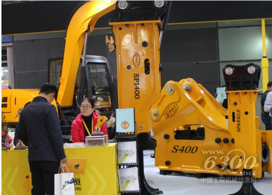 本屆展會,煙臺軍恒共攜六臺破碎錘產(chǎn)品亮相,最大型號為S600(釬桿直徑200mm),最小型號為SP450(釬桿直徑45mm)。
