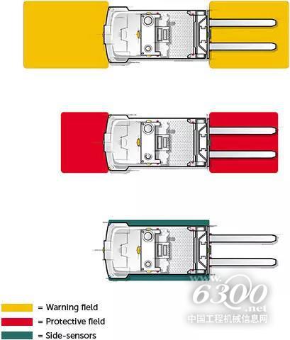APM可選配的區(qū)域安全傳感器使得車(chē)輛更加安全。安裝區(qū)域安全傳感器的目的是為了偵測(cè)人員保護(hù)傳感器偵測(cè)平面上方或下方的物體,以避免與這些物體發(fā)生碰撞。例如,它可以偵測(cè)到伸出貨架部分的托盤(pán)或貨物。